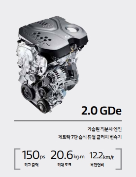 2.0 GDe 엔진, 7단 EDC 변속기(수동모드 지원), 오토 스탑/스타트 시스템